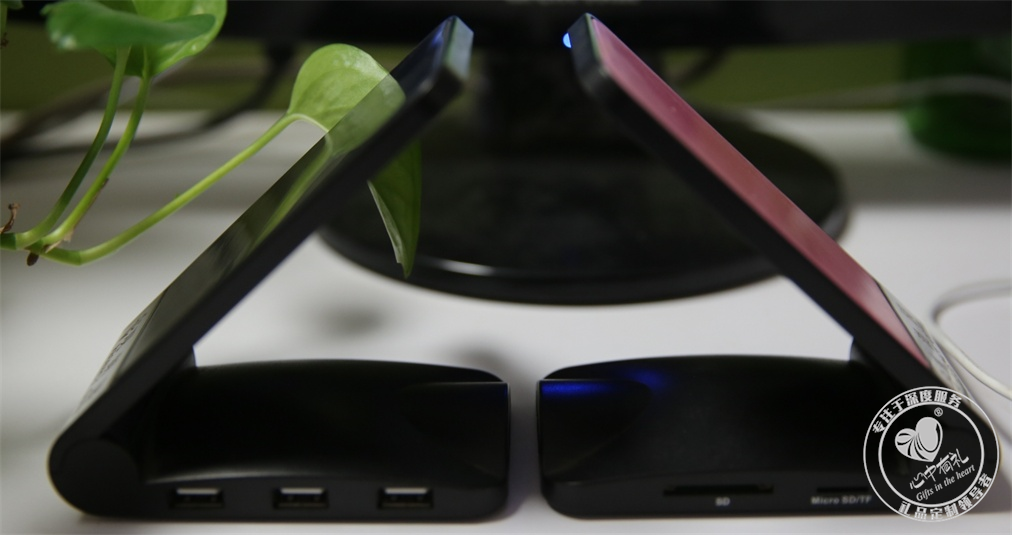1.三口USB集线器、SD/TF读卡器、手机座、手机座应急充电器,多种功能合为一体。