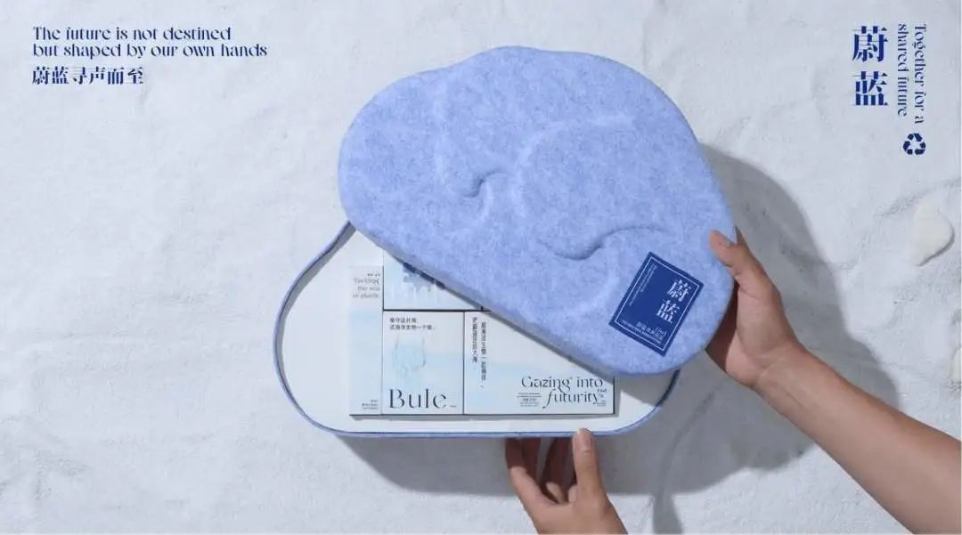 外盒选用了GRS国际再生标准认证的环保再生毛毡,可复用为日常实用的收纳盒。整个盒型为海浪形状,礼盒内所有的搭配物品都为日常实用的产品,兼具实用性与观赏性。与自然和谐共生,让美丽可持续。