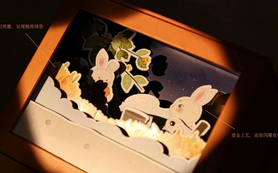色系和印花都很符合中秋节的气氛,内含灯带 秒变氛围感灯箱,亚克力灯箱邀明月留在家中,一口月饼和爱的人团聚,与他们细品这一份美好~