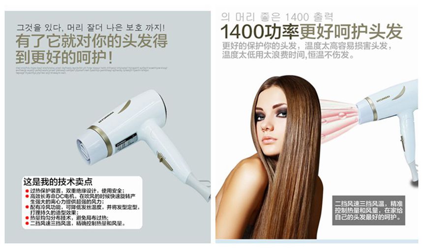 4.高效长寿命DC电机,在吹风的时候快速旋转产生强大的离心力提供超强的风力。
