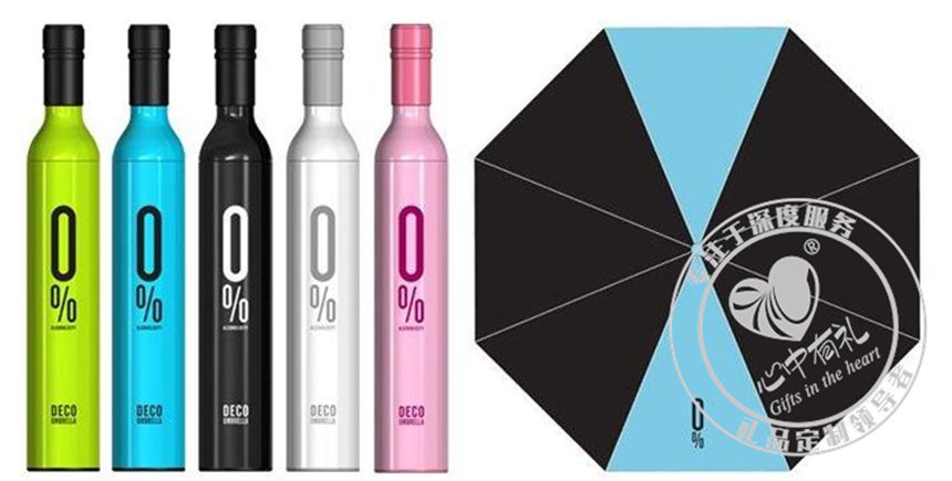 材质】:21寸8骨三折钢骨手开酒瓶伞,防紫外线银胶布