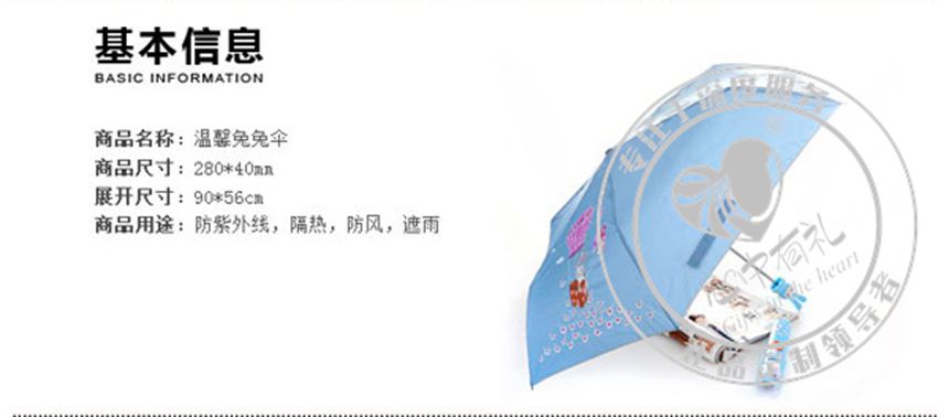 材质】:21寸8骨三折钢骨手开酒瓶伞,防紫外线银胶布