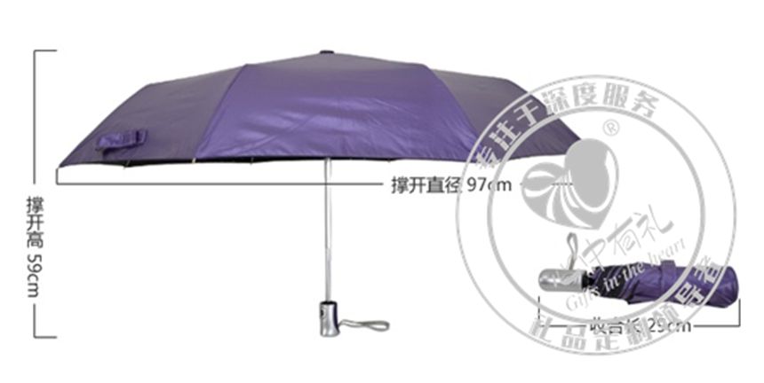 产品尺寸】:伞面半径54cm,伞下直径97cm,撑开高度59cm,收合长度29cm