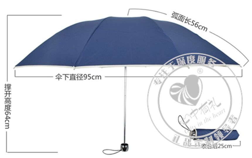产品尺寸】:伞面半径54cm,伞下直径95cm,撑开高度64cm,收合长度25cm