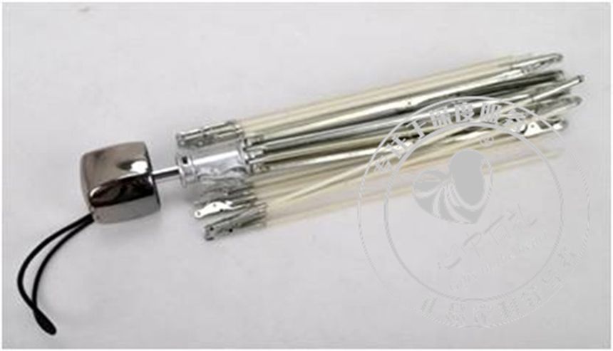 伞骨材料】:8K倒置四折中棒,上粗下细,电度铁+玻纤伞骨