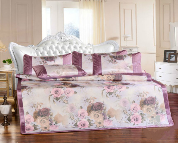 图二为:清幽花梦冰丝席三件套