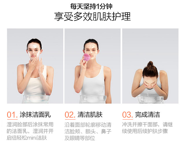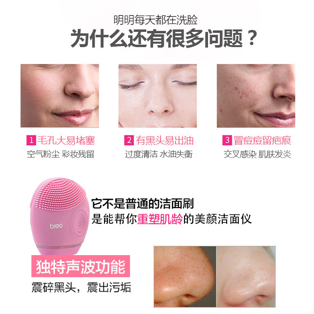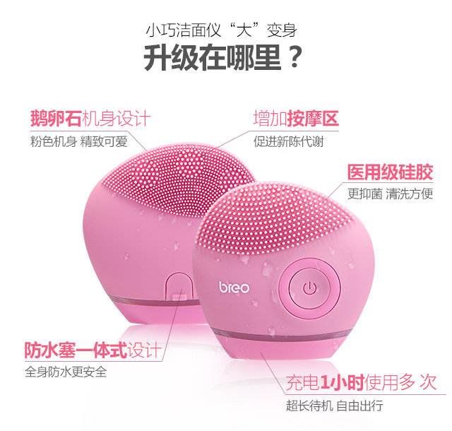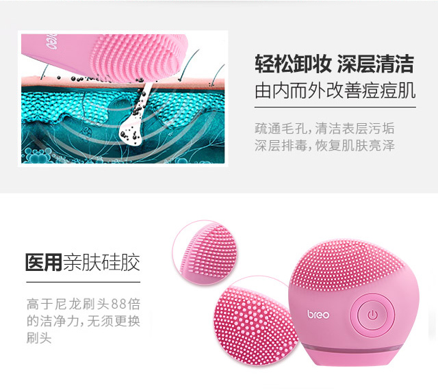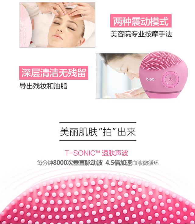 商品特色:医用亲肤硅胶,独特声波功能,轻松卸妆,深度清洁。