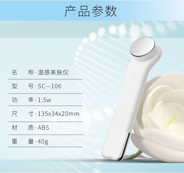 交货期:名称·温感美肤仪型号·SC-106功率·1.5w尺寸・135Xx34x20mm材质·ABS重量·40g