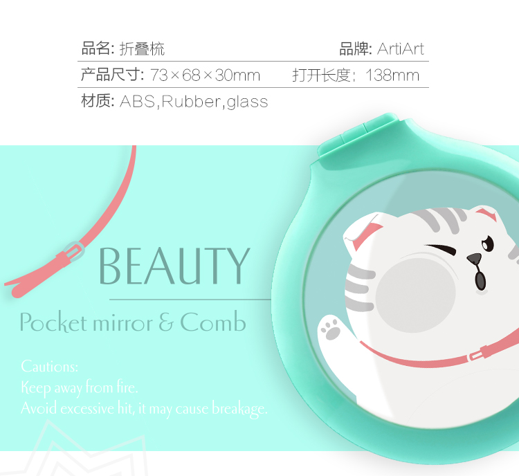 交货期:品名:折梳品牌: Artiart产品尺寸:73×68×30mm打开长度:138mm材质:ABS, Rubber, glass