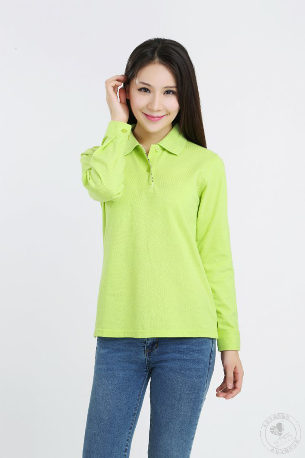 特点:长 袖翻领六路面料,提花领子,门襟和后