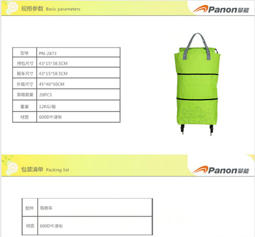 1.一车两用:展开为购物车,折叠后为挎包,配合生活多种购物需求