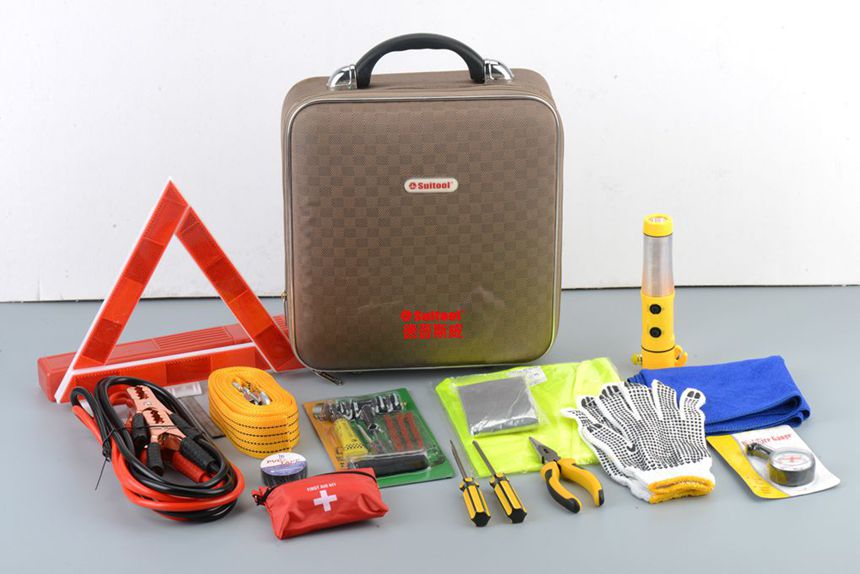 4米带式拖车绳,多功能应急锤,医药包,6寸尖嘴钳,PVC胶带,